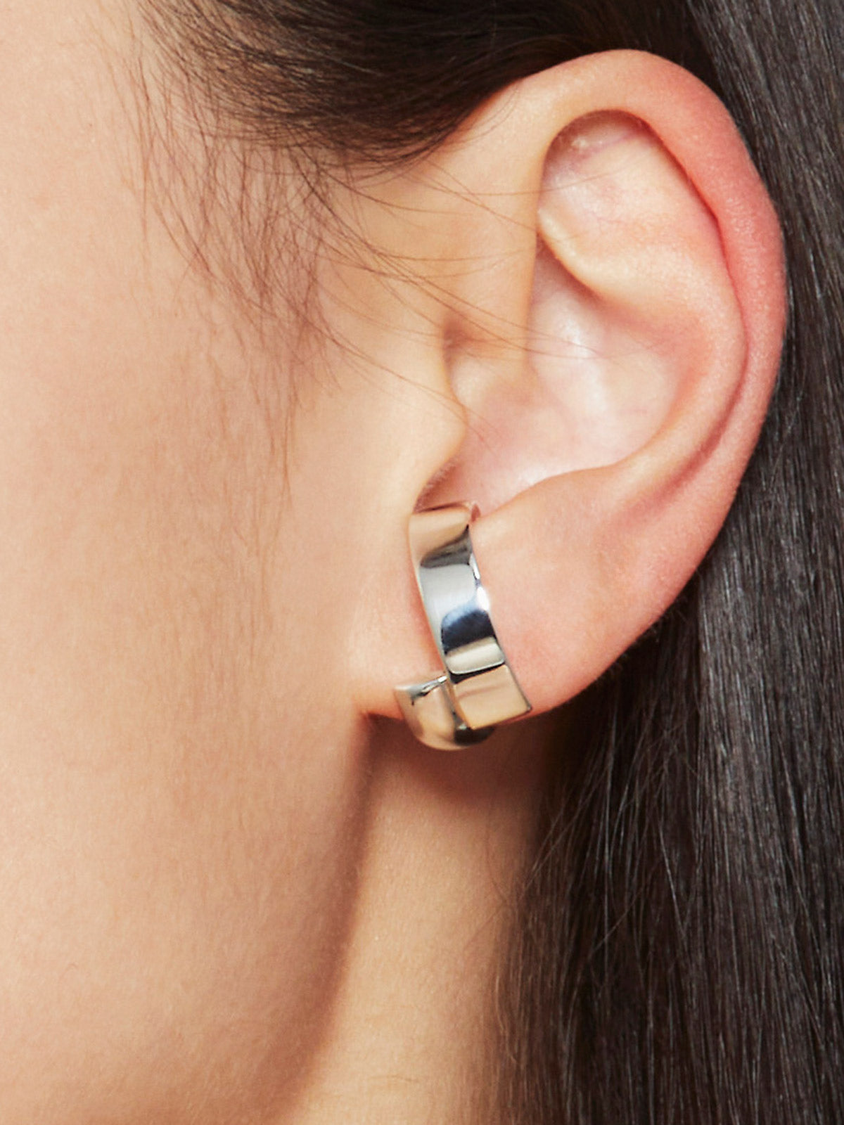 LUKE ear cuff is our medium size overlapping hoop. A gentle piece, the wires curve and pass each other to hug the lobe. Can be worn singular or as a pair.